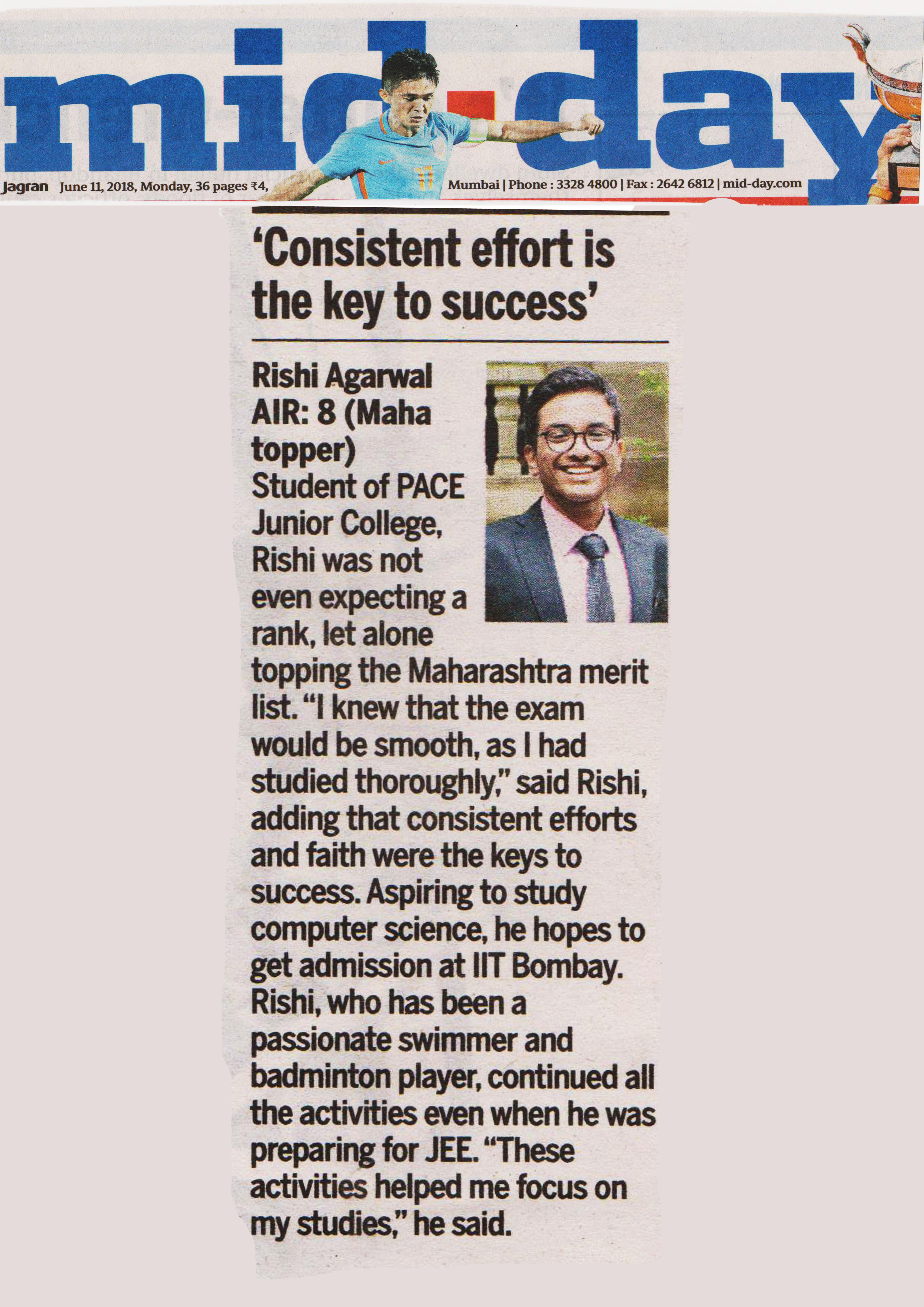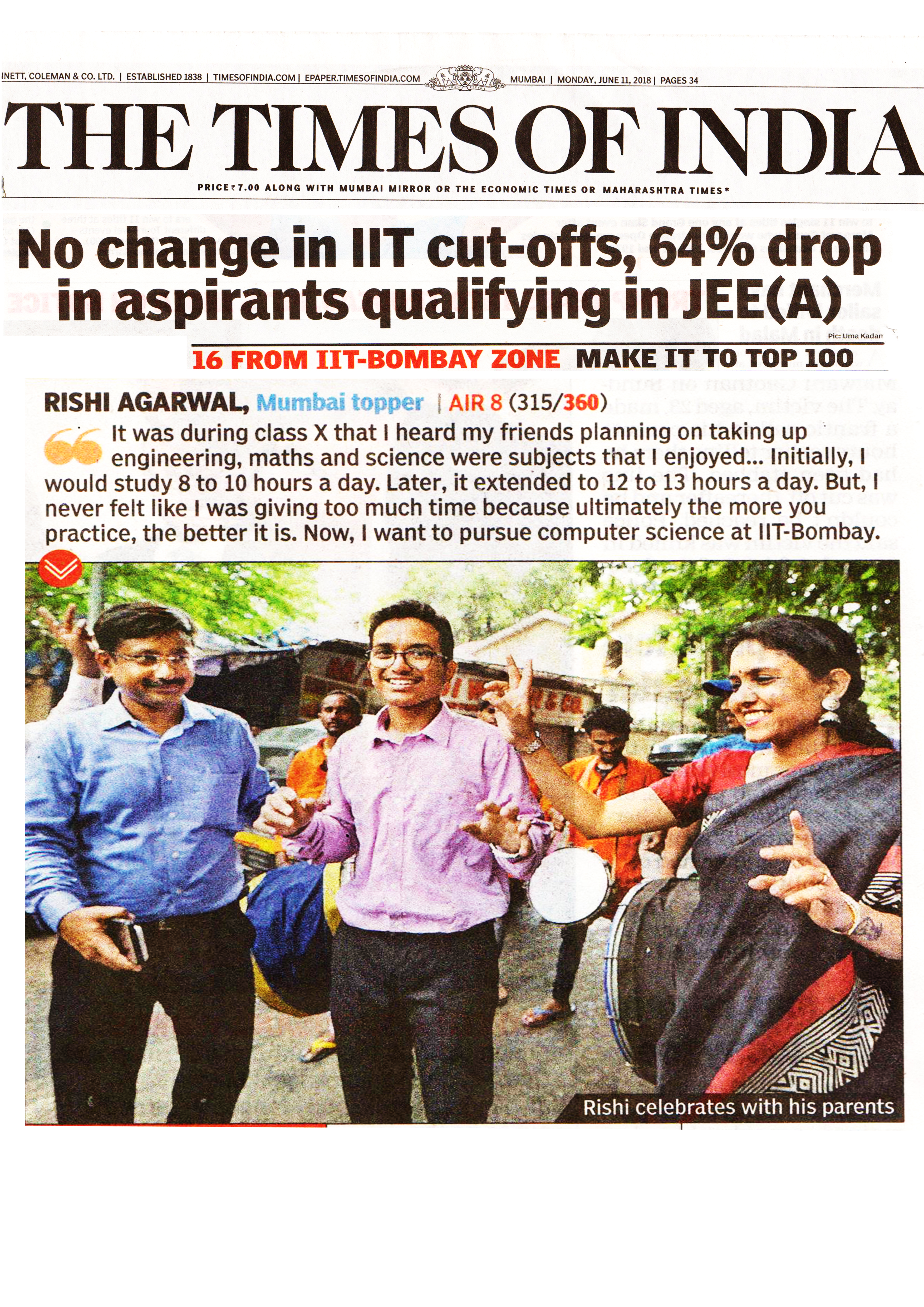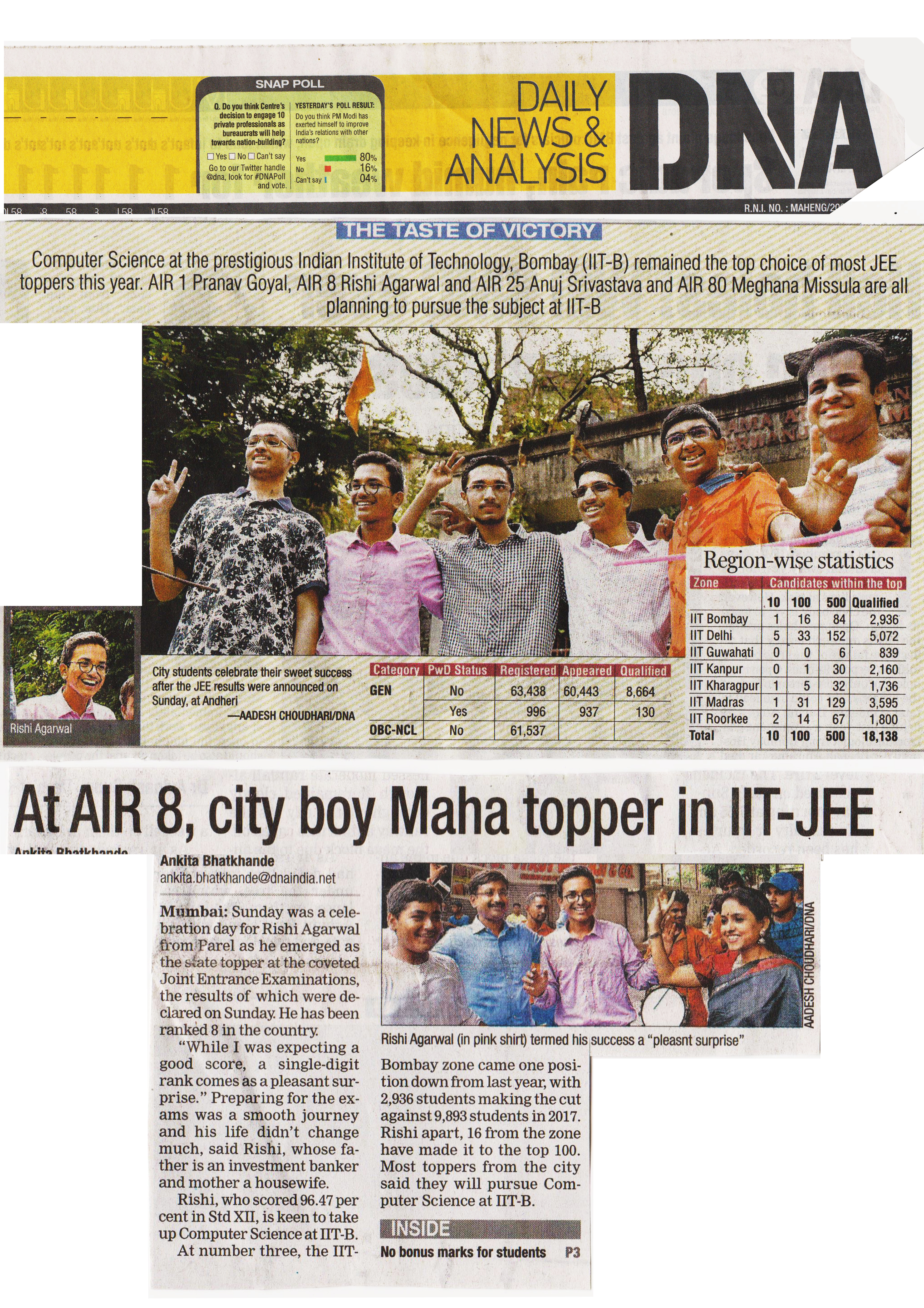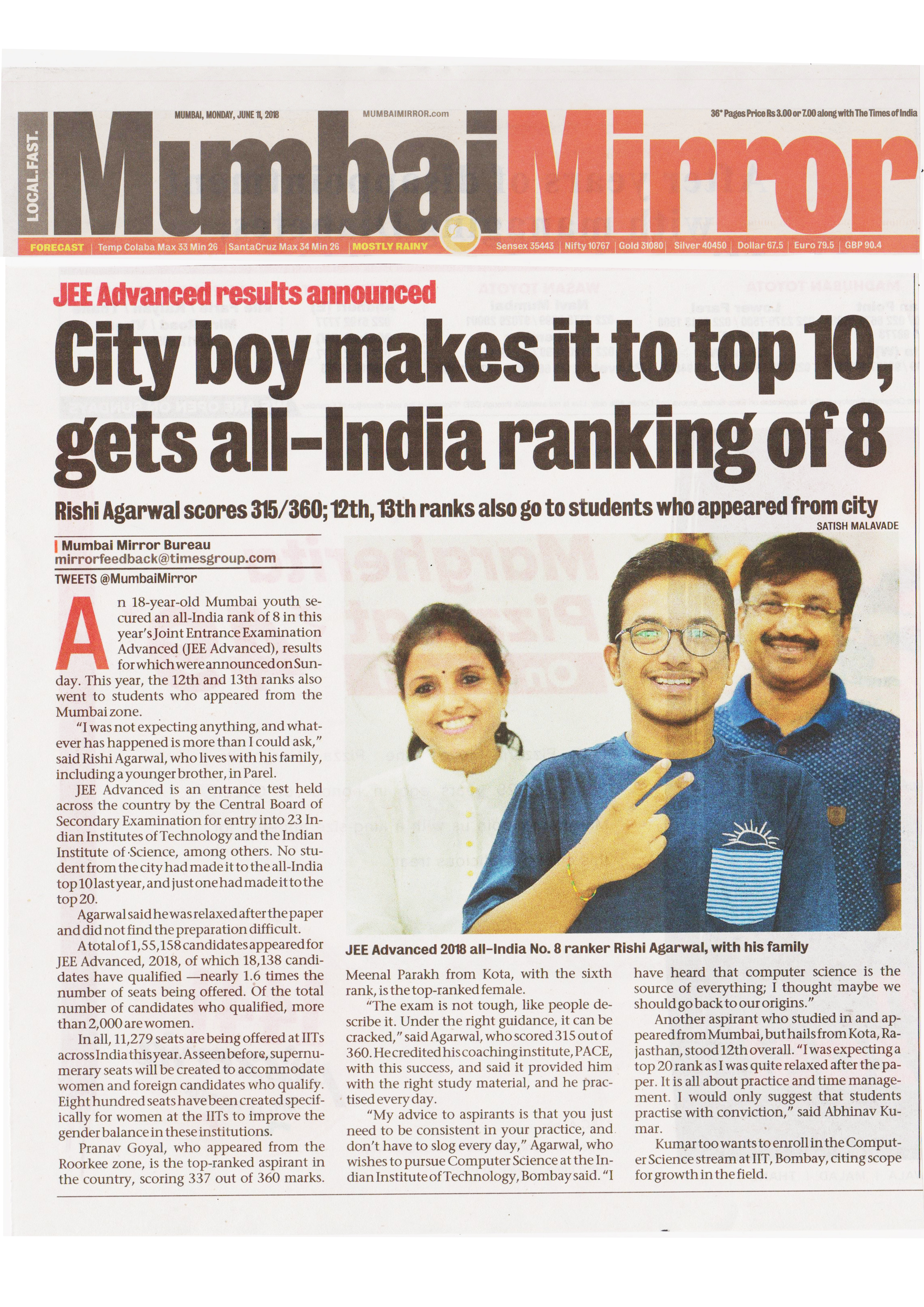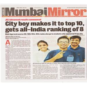 Rishi Agarwal, AIR-8 in JEE Advanced makes it to headlines in Mumbai Mirror
