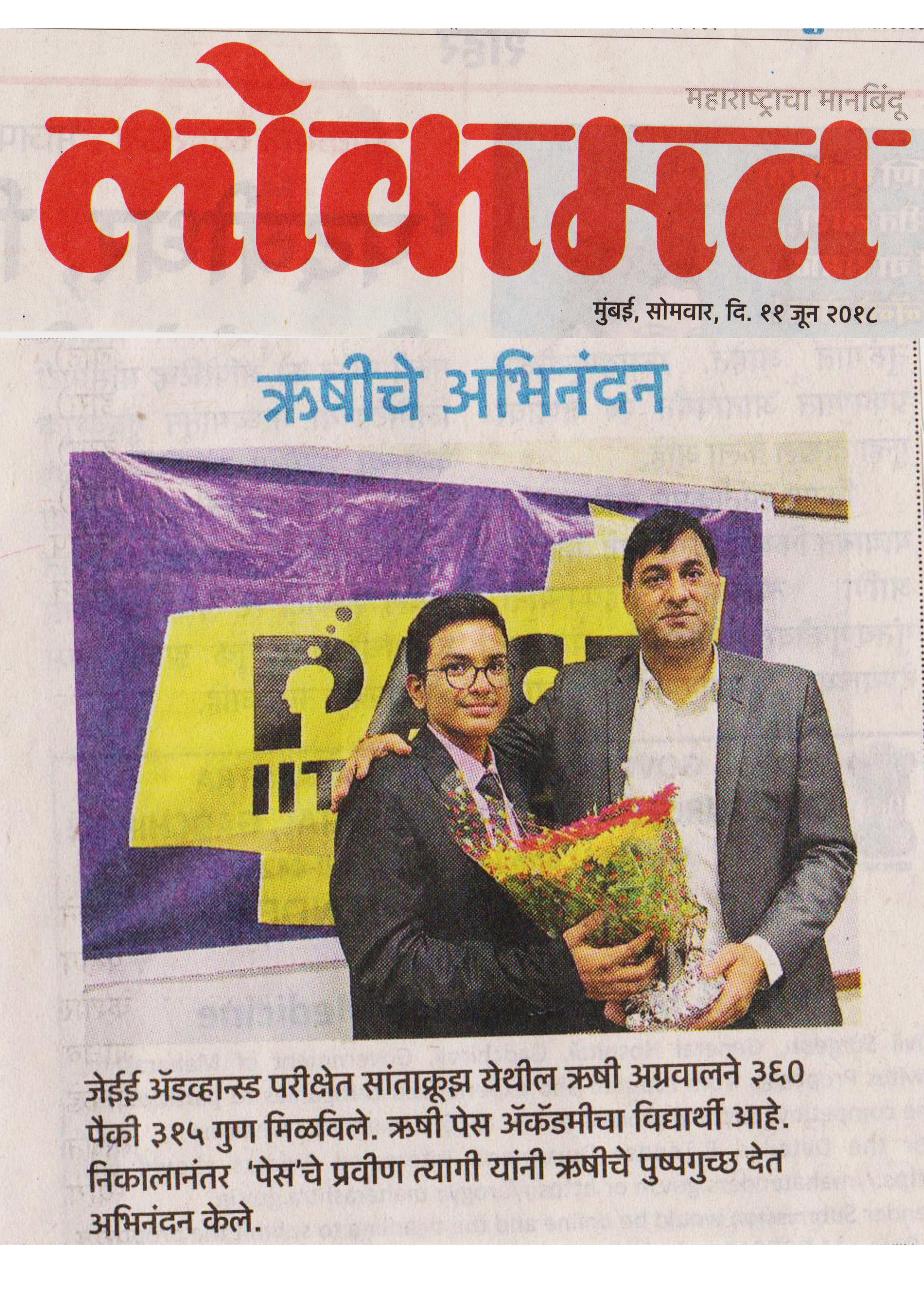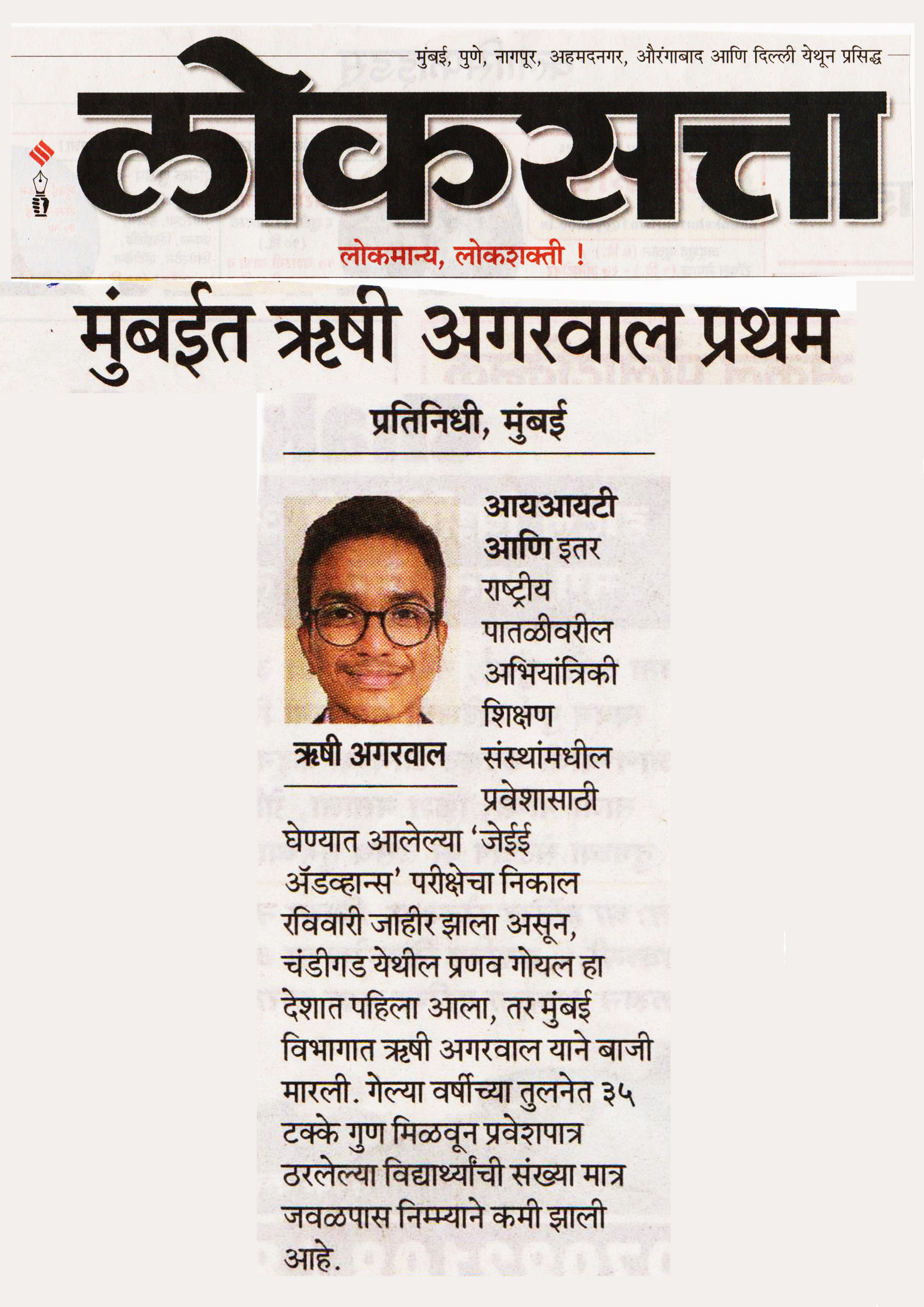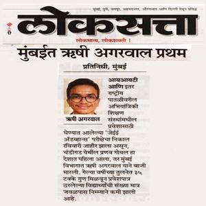 Rishi Agarwal, AIR-8 in JEE Advanced gets featured in Loksatta