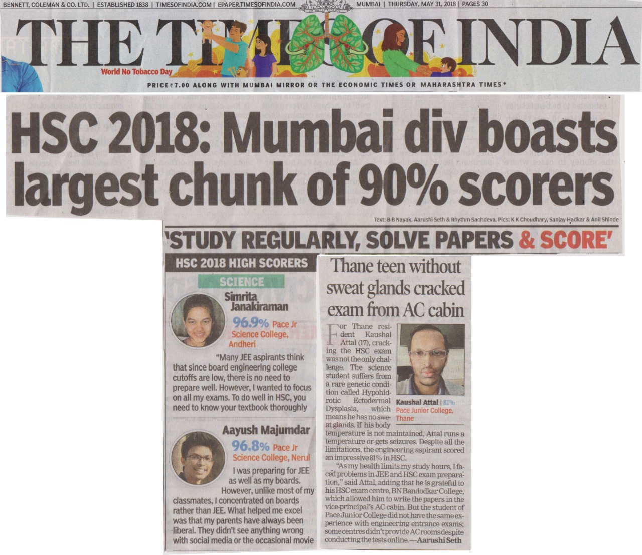 PACE Junior Science Colleges get featured in THE TIMES OF INDIA