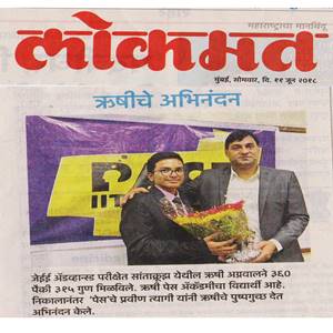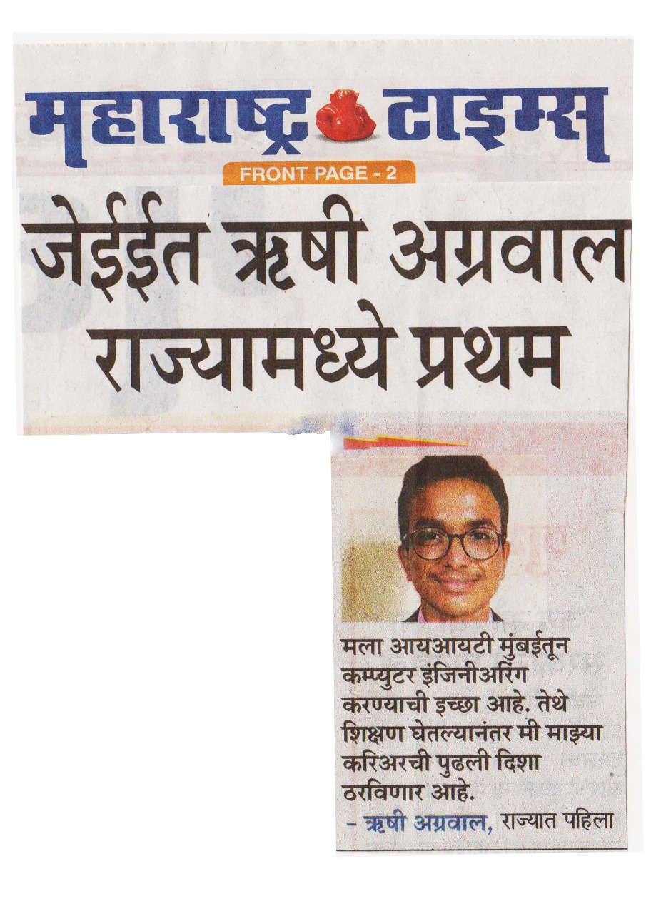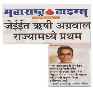 Rishi Agarwal, AIR-8 in JEE Advanced, our student on the front page of Maharashtra Times
